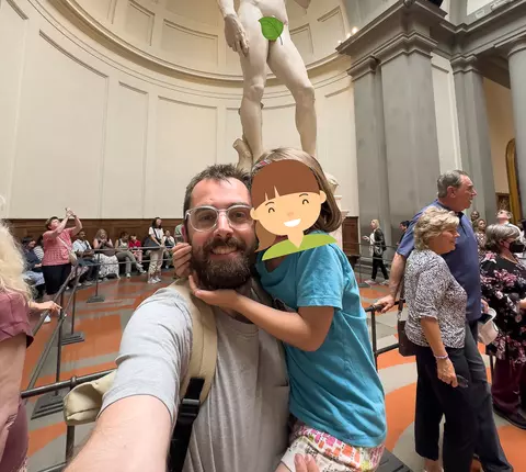 Cuando se lo cuentas así, el museo deja de ser un sitio serio y silencioso y pasa a tener un sentido. Dentro, fuimos directos a lo que sabíamos que más le podía sorprender, sin dispersarnos. Ver el David impresiona también a los niños, sobre todo cuando entienden lo enorme que es y el trabajo que hubo detrás.